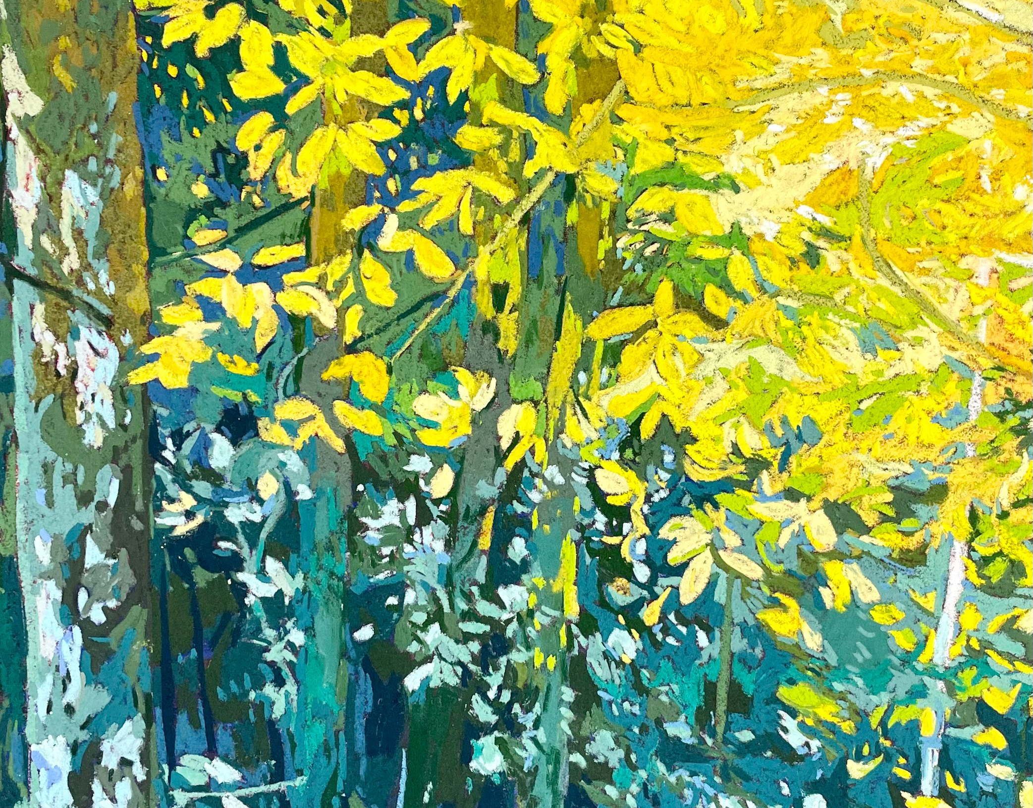 Pour cette exposition Solenn Marrel expose des pastels secs. Technique artistique à part, ni véritablement dessin, ni peinture, le pastel sec allie la fois la richesse des couleurs et la douceur du geste. L’utilisation de ces bâtonnets de pigments purs permet de réaliser des œuvres aux tonalités subtiles et vibrantes. La poudre du pastel s’accorde parfaitement avec la surface du papier, offrant à l’artiste un rapport direct avec la matière qui conserve sa fraîcheur et son intensité au fil du temps.
